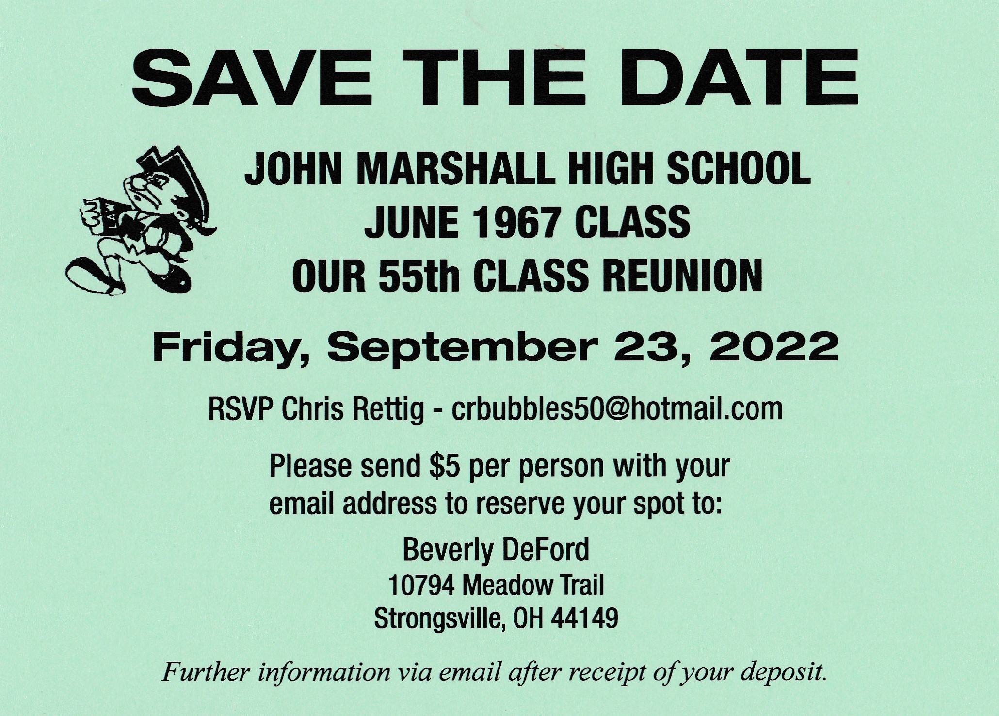 Class of 1967 June Details Category: 2022 Reunions Published: Thursday, 28 April 2022 08:51 Hits: 1814 The June class of 1967 is holding the 55th Reunion.